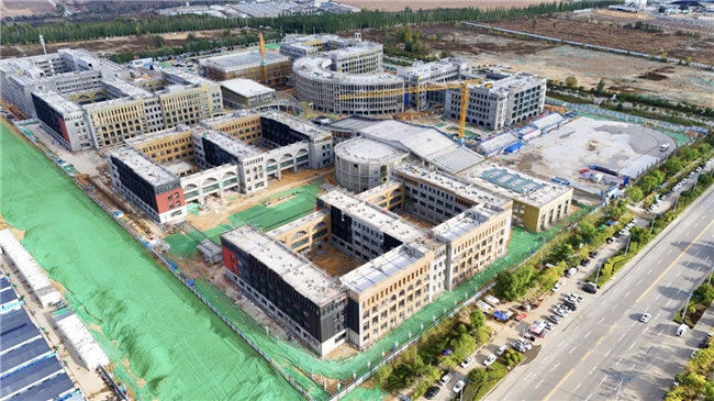 项目位于榆林市高新区南郊,总建筑面积为12.01万平方米,建设内容包括初中部教学楼、高中部教学楼、综合楼、报告厅、行政楼及地下车库、看台、室外工程等。依托“智慧校园”设计理念,将现代教育与科技创新有机融合,助力教育质量提升与文化传承,建成后将有效完善区域基础教育设施布局,填补区域优质教育资源空白,成为榆林高新区教育发展的示范样板。