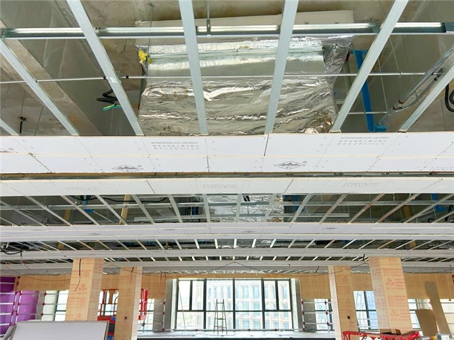 工期紧、任务重。项目装饰团队提前介入策划阶段,梳理图纸问题200余条,依托公司集采与招标资源,高效完成15类主要材料的合同签订与进场安排。通过建立“合同-验证-监控”三级台账体系,建立从“下单→出厂→在途→进场”的全过程追踪机制,提前预警潜在延误,确保龙骨石膏板、石材等关键线路材料供应无缝衔接。 同时结合月度盘点与巡检数据,动态优化补货节奏,为行政楼内饰面施工提供扎实的物资保障。